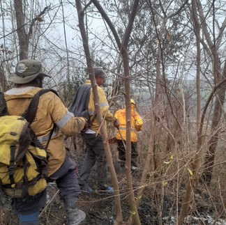 Personal del proyecto, incluyendo a Luis Vázquez, Mateo Manksud y Manuel Martínez, trabajaron en la línea y el perímetro del incendio.